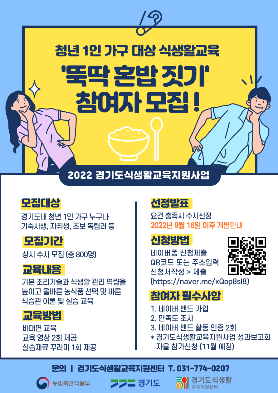 경기도 청년 1인 가구 대상 '뚝딱 혼밥 짓기' 참여자를 모집합니다!