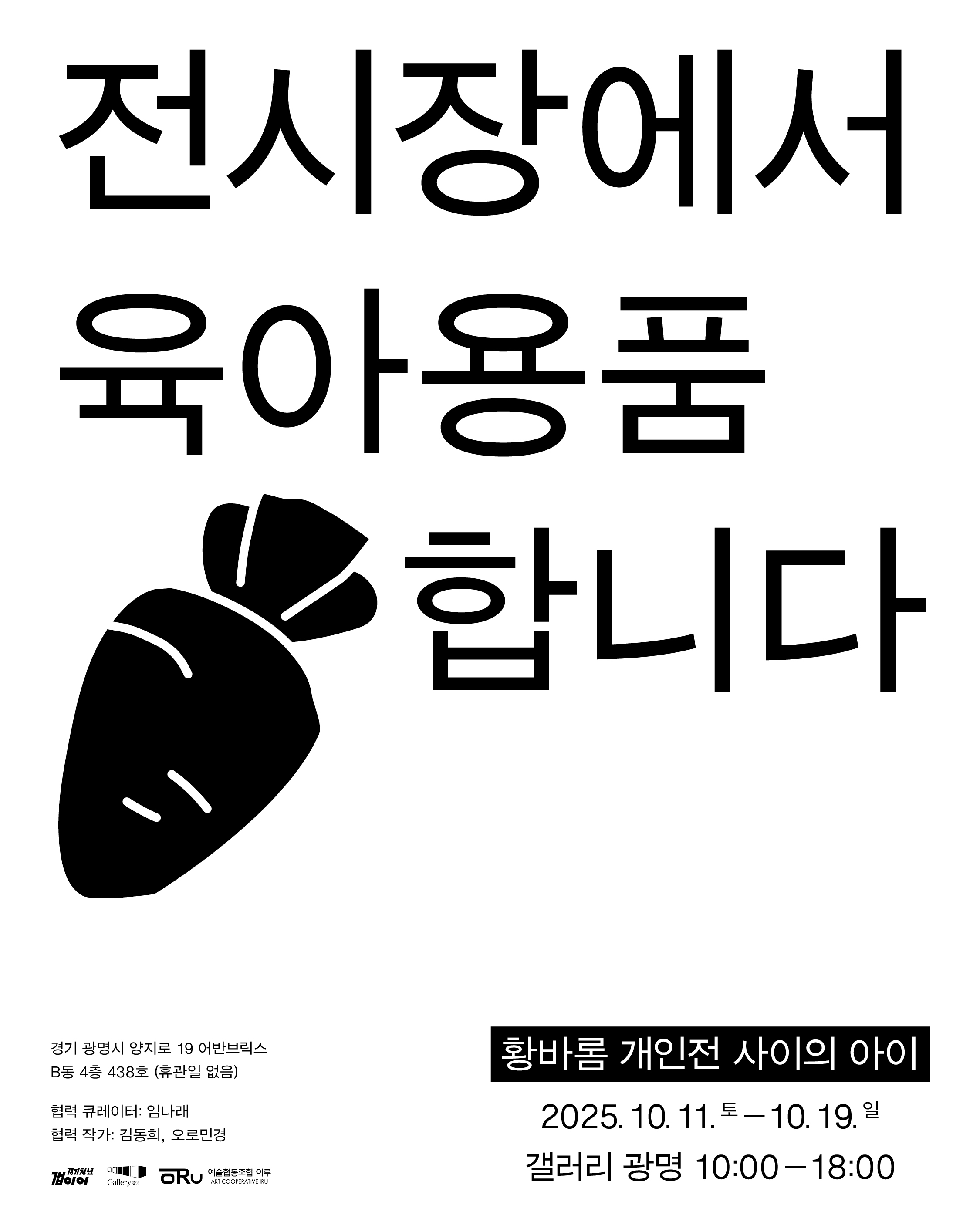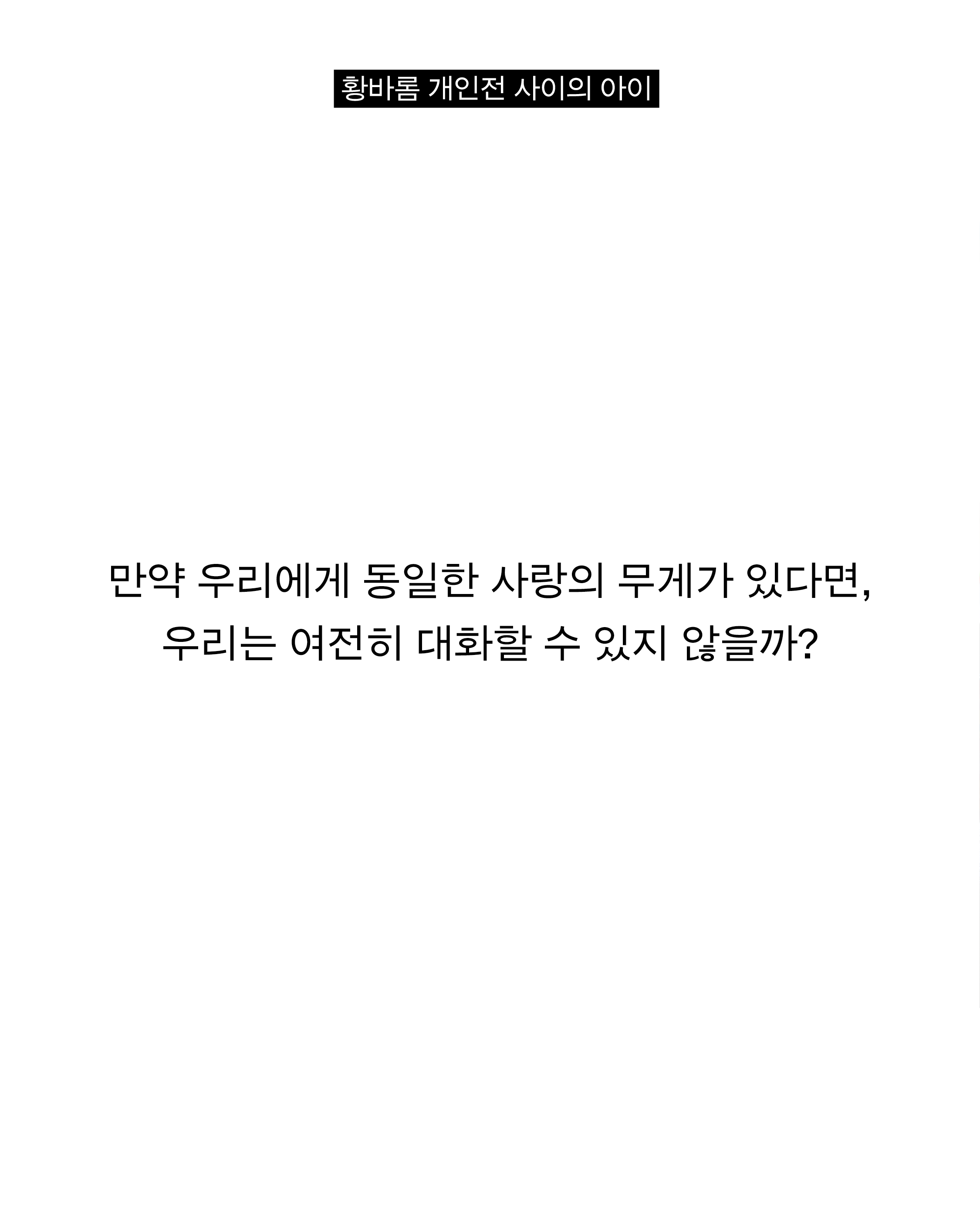 《사이의 아이》는 결혼 9년 만에 첫 출산과 육아를 경험한 기획자이자 작가, 황바롬 @b_a_ind 의 첫 개인전입니다.