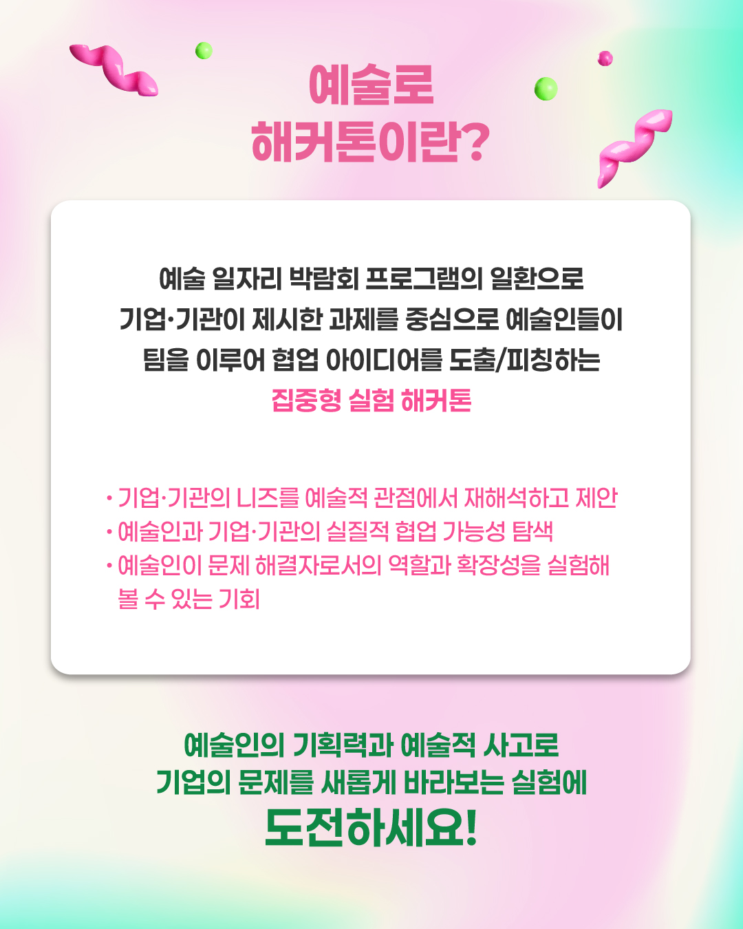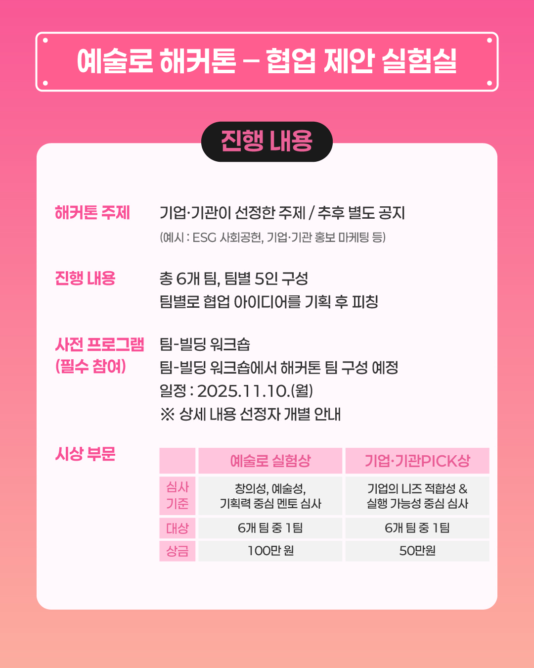 🏆 시상부문 : 기업·기관 PICK상 / 예술로 실험상(상금 100만원)