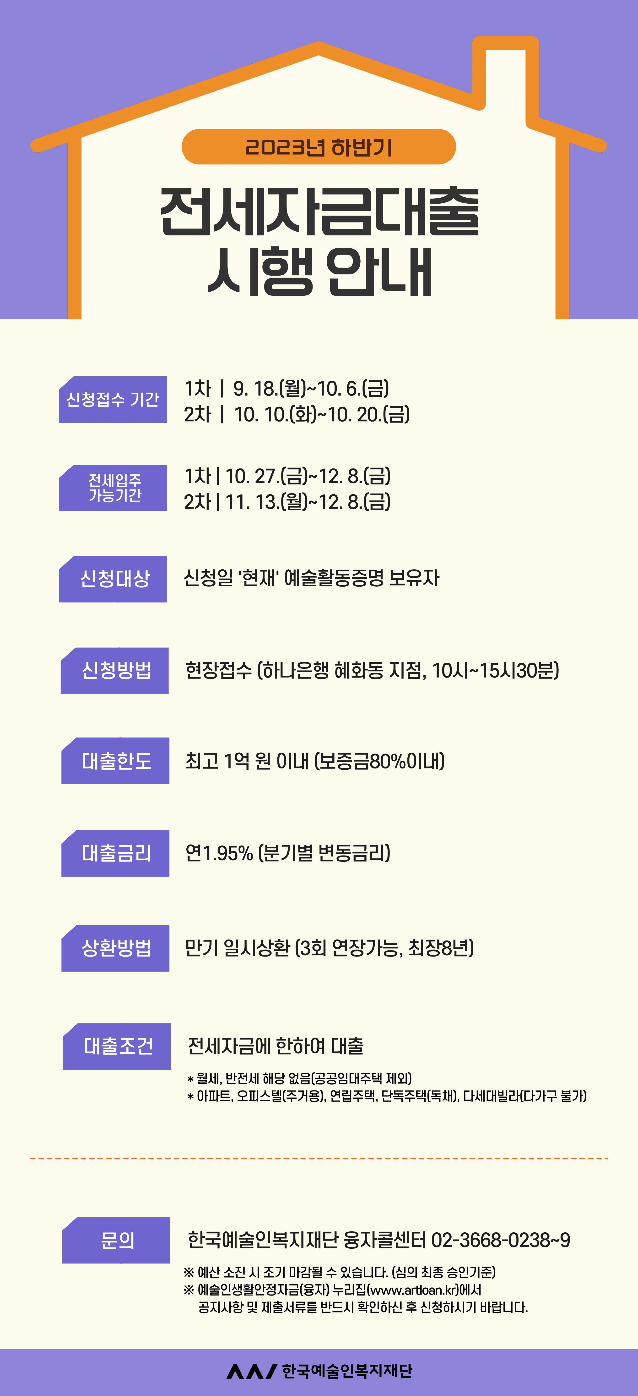 라. 문의사항: 예술인융자팀 김지언 주임(02-3668-0331, kimje7772@kawf.kr)