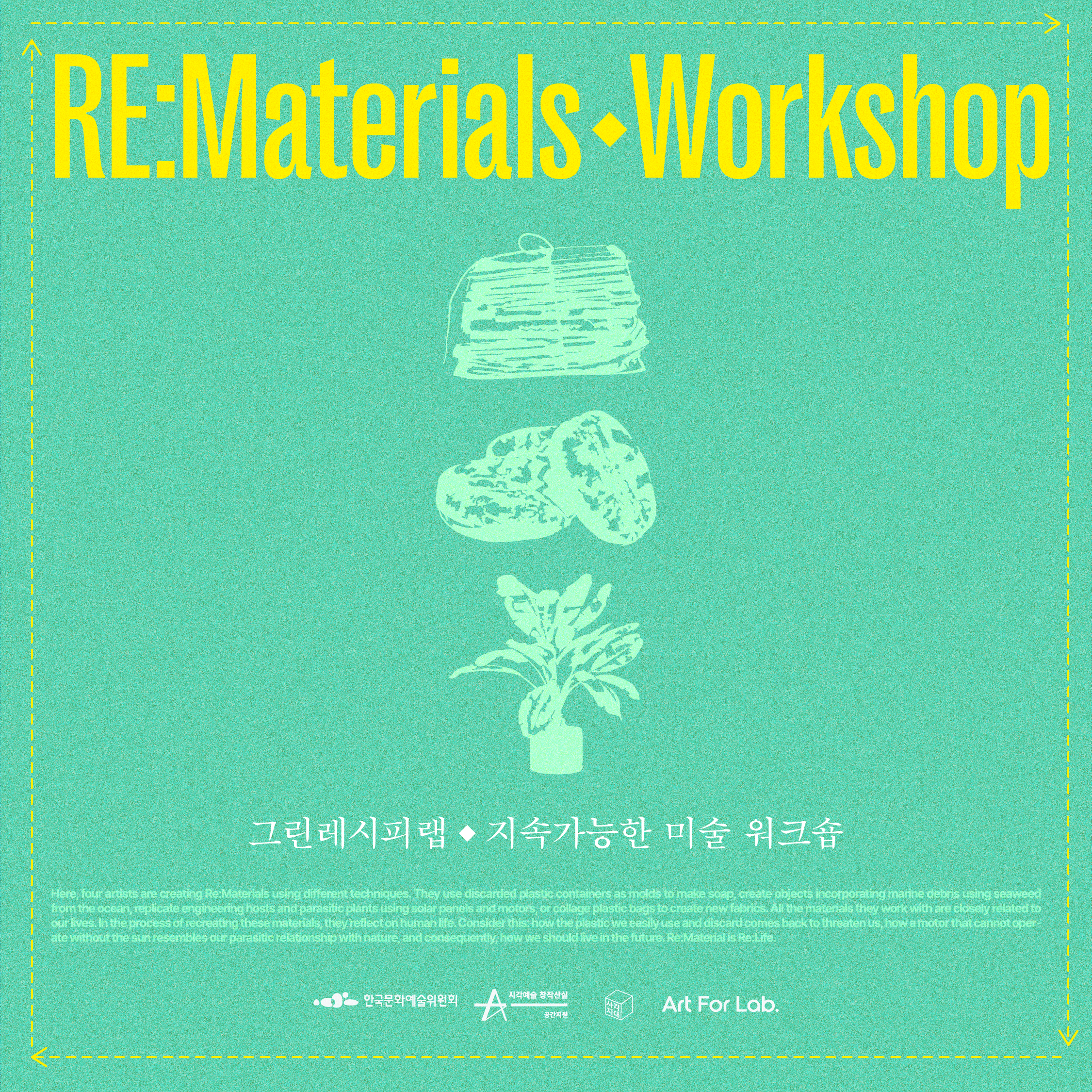 그린레시피랩은 예술가와 환경에 유해한 재료를 대체할 수 있는 지속가능한 재료를 연구하는 여성 예술인 콜렉티브로, 2022년 결성된 이래로 30명 이상의 예술가들이 모여 활동을 지속하고 있으며 재료뿐만 아니라 작업환경, 전시환경 등 관심영역의 외연을 넓혀나가고 있습니다.