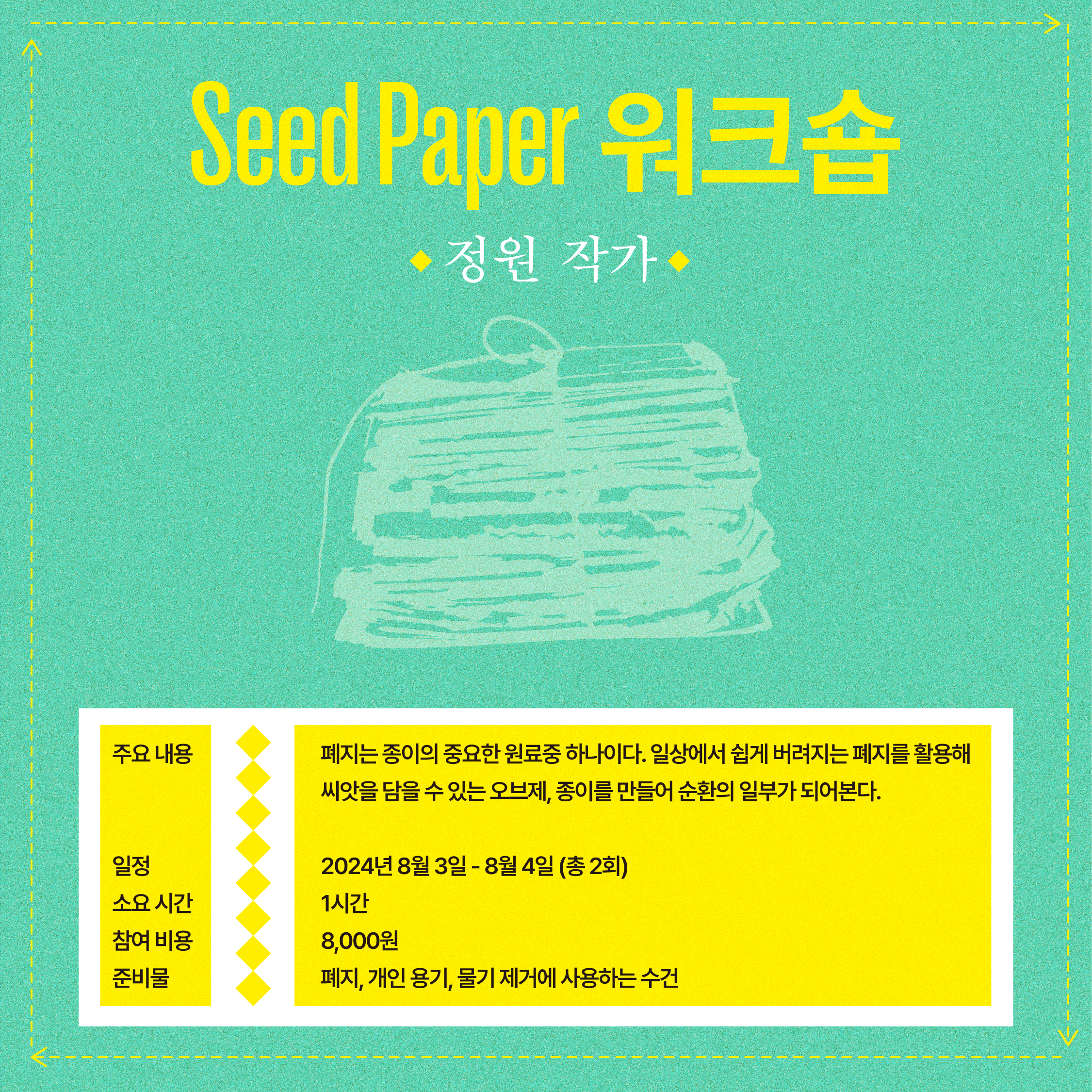 폐지는 종이의 중요한 원료 중 하나입니다. 일상에서 쉽게 버려지는 폐지를 활요해 씨앗을 담을 수 있는 오브제와 종이를 만들어 순환의 일부가 되어봅니다.