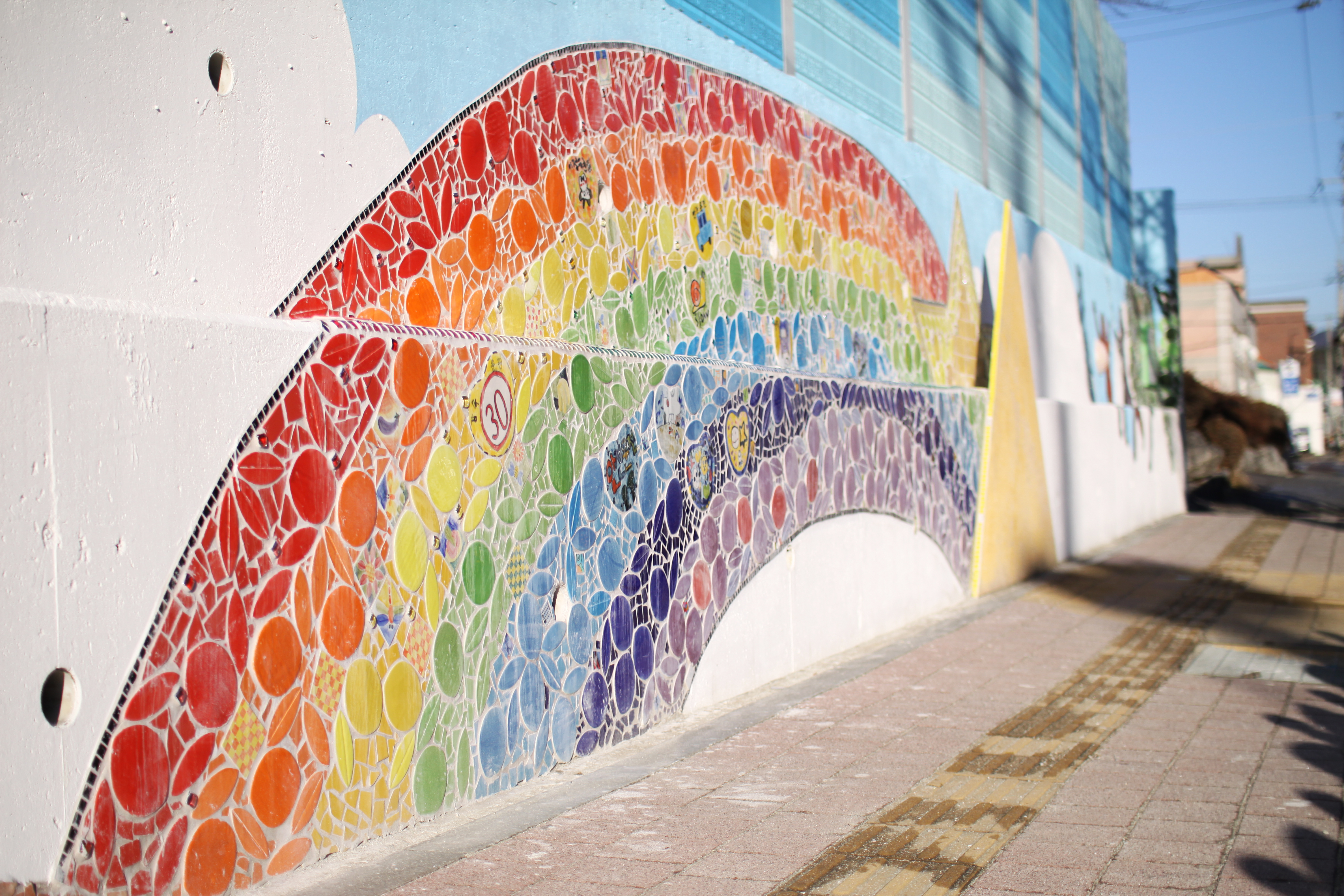 오랜 시간이 지나도 변색되지 않고 반짝이는 도자기 타일을 이용하여 동심을 표현한 작품입니다.