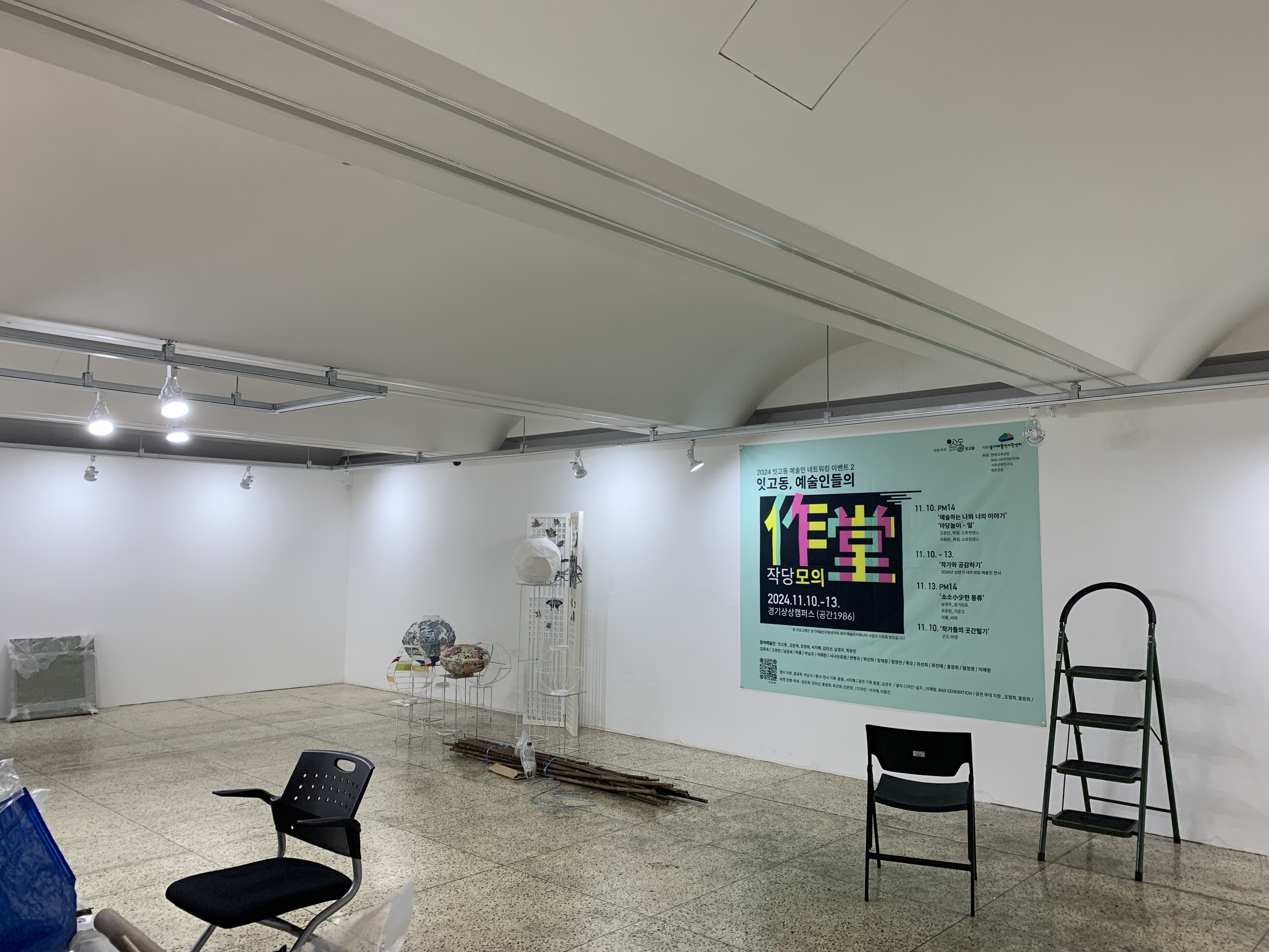 예술광장잇고동 예술인들의 作堂(작당)모의 D-1. 경기상상캠퍼스 공간1986에서 설치작업 중입니다.
