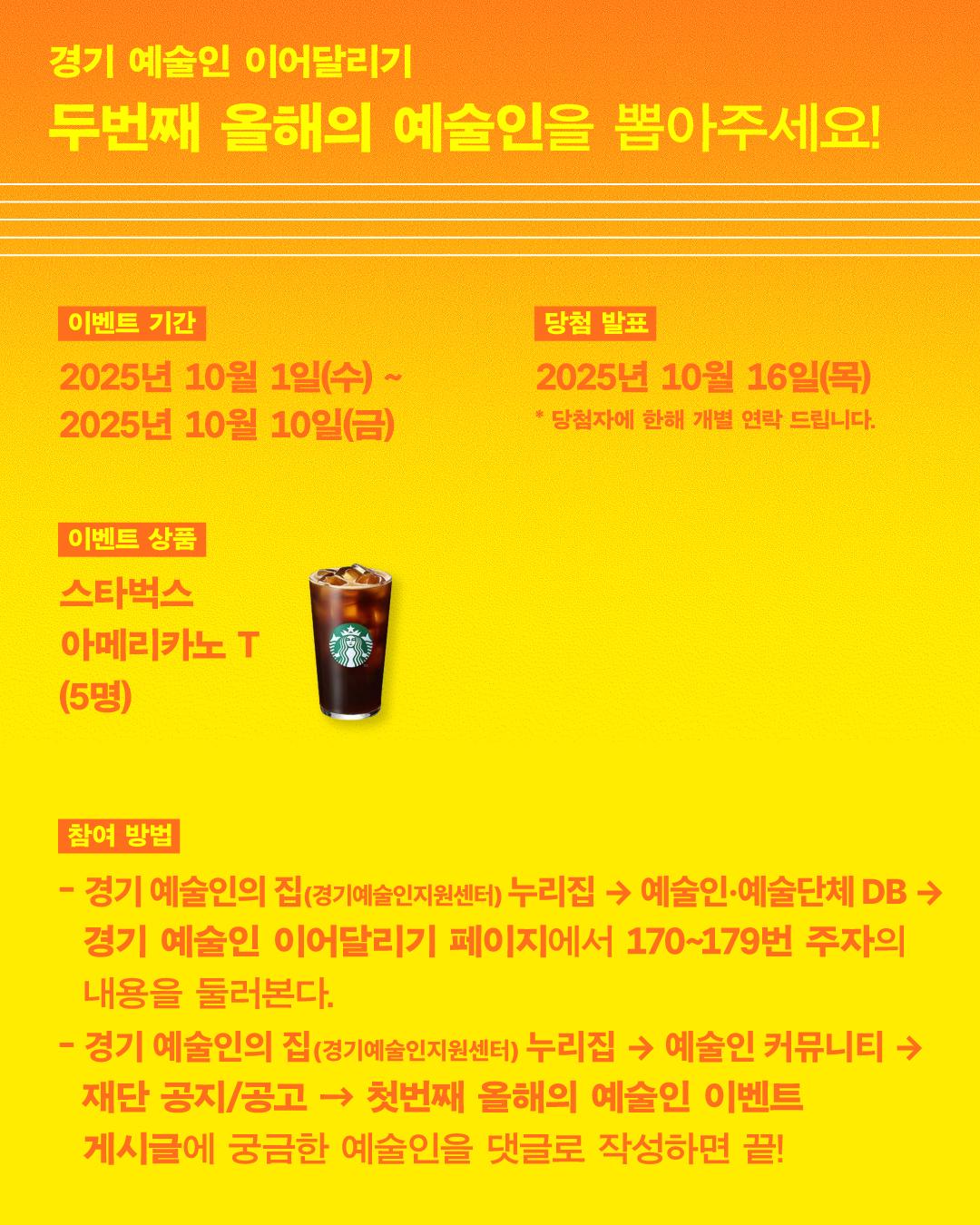 🥰댓글 이벤트🥰 | 경기예술인지원센터 🎉두번째 올해의 예술인 선정 이벤트(~ 10.10)