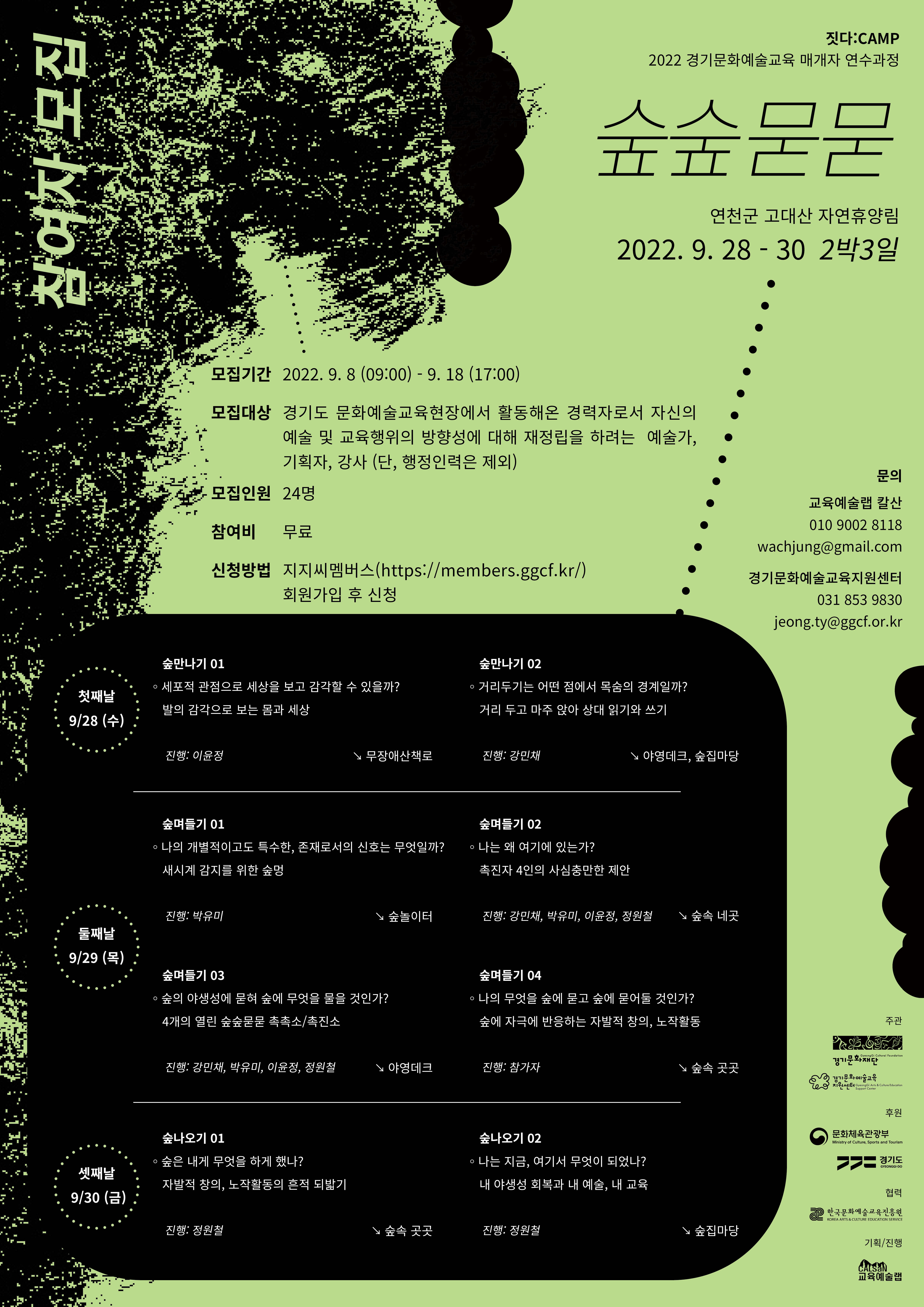 [안내] 2022 경기문화예술교육 매개자 연수과정 <짓다:CAMP-숲숲묻묻> 참여자모집